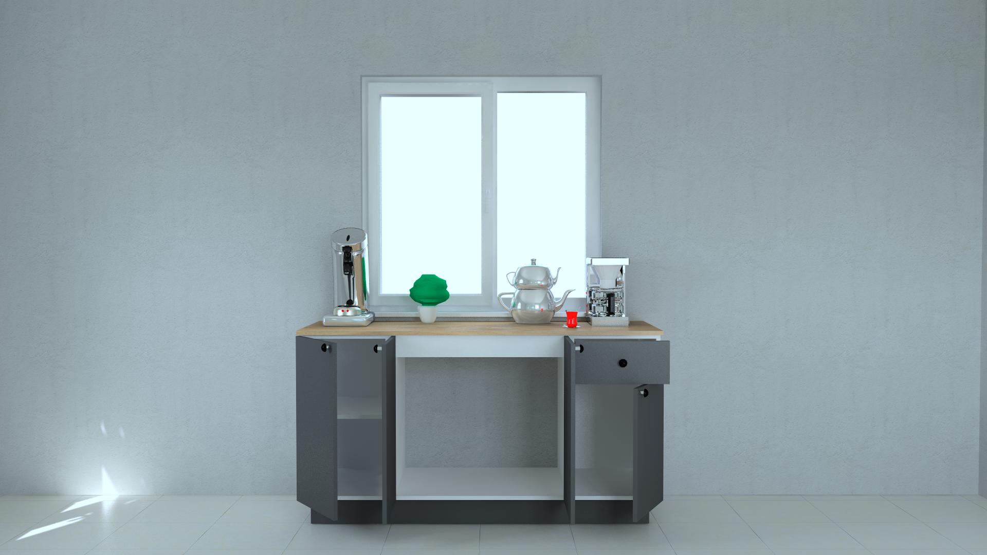 - Görselde görünen tezgahta ürünün içerisine dahildir. MDF malzemeden üretilmektedir. Tezgah, suya dayanıksızdır, suyla temas etmemesi gerekmektedir. Altına evye modülü konulması önerilmez.
