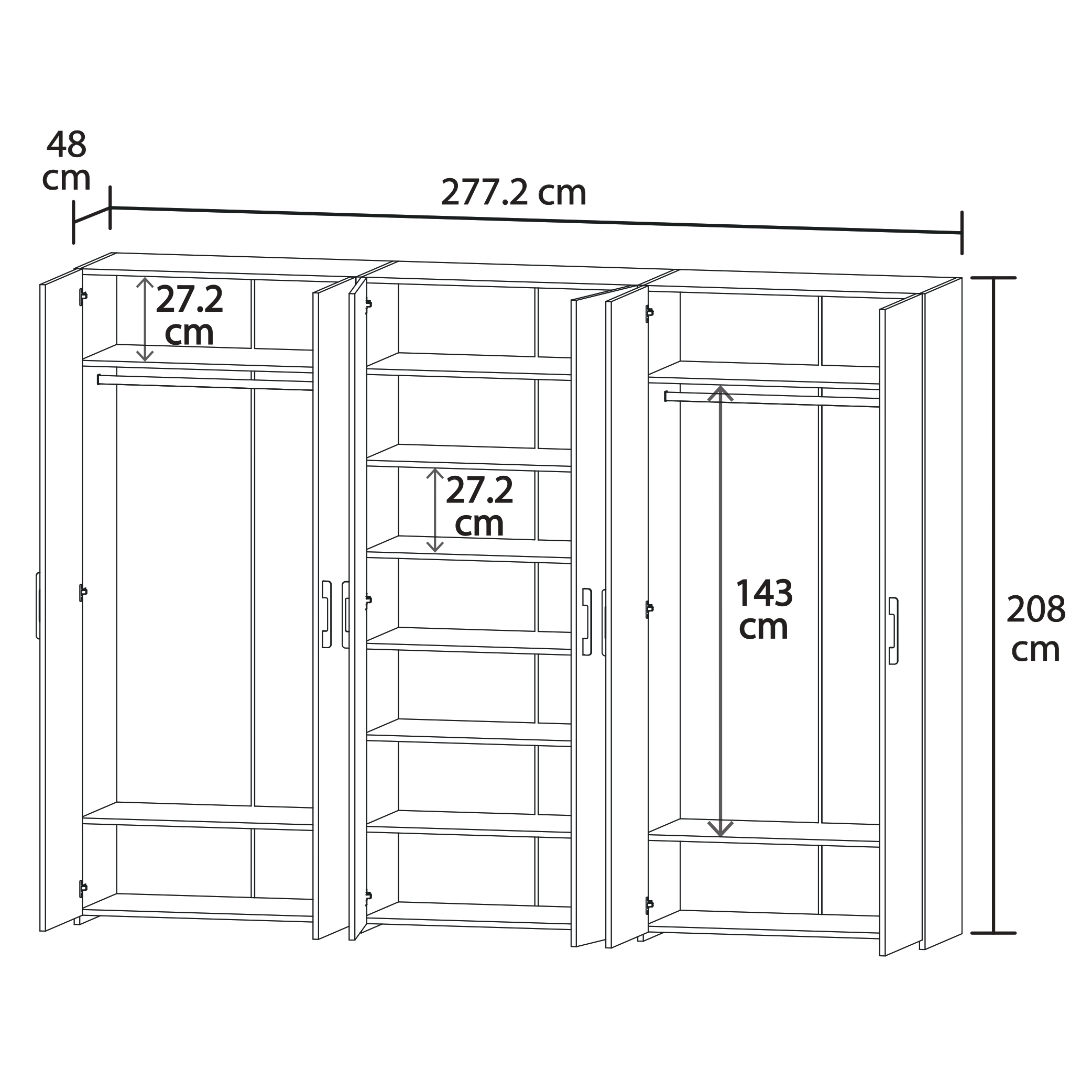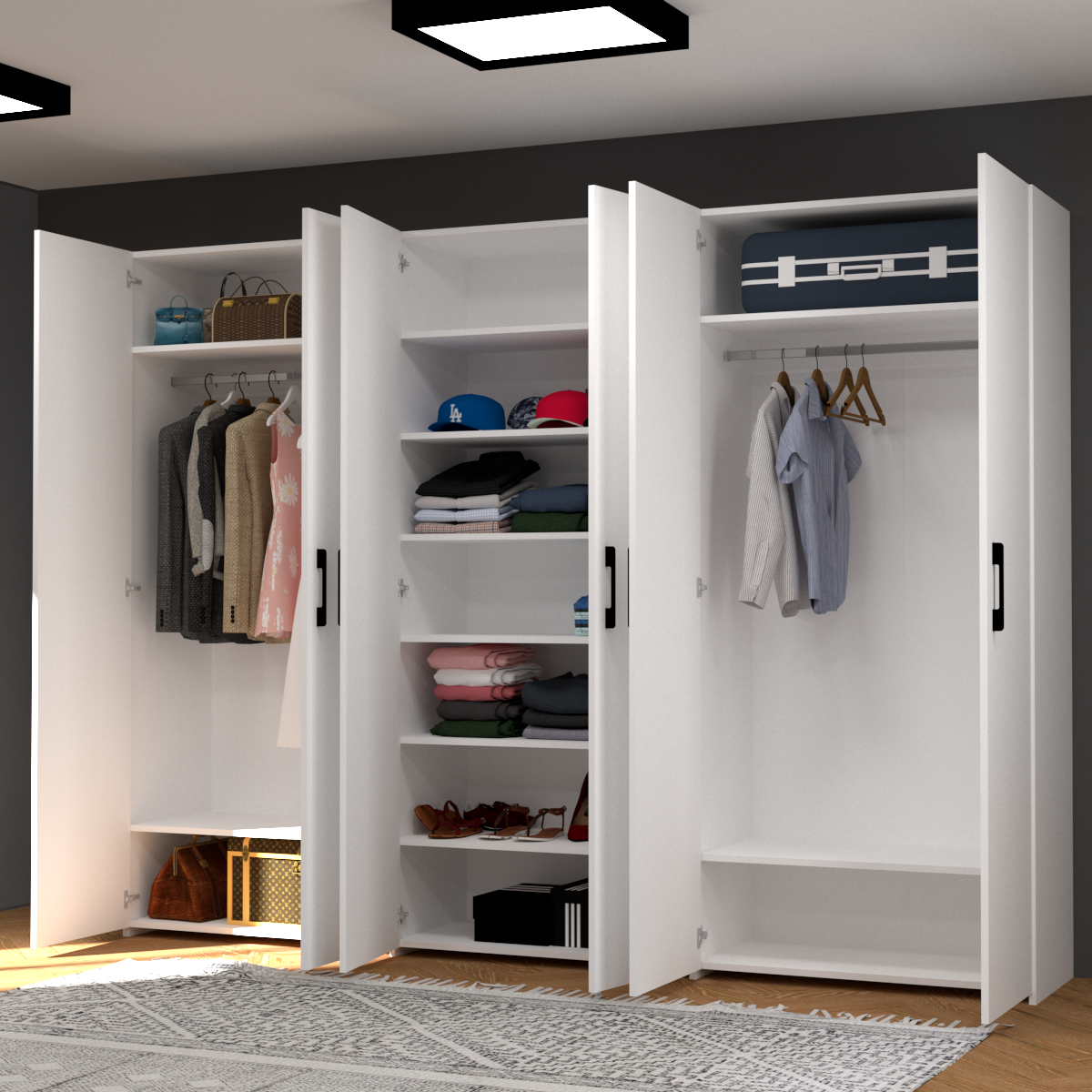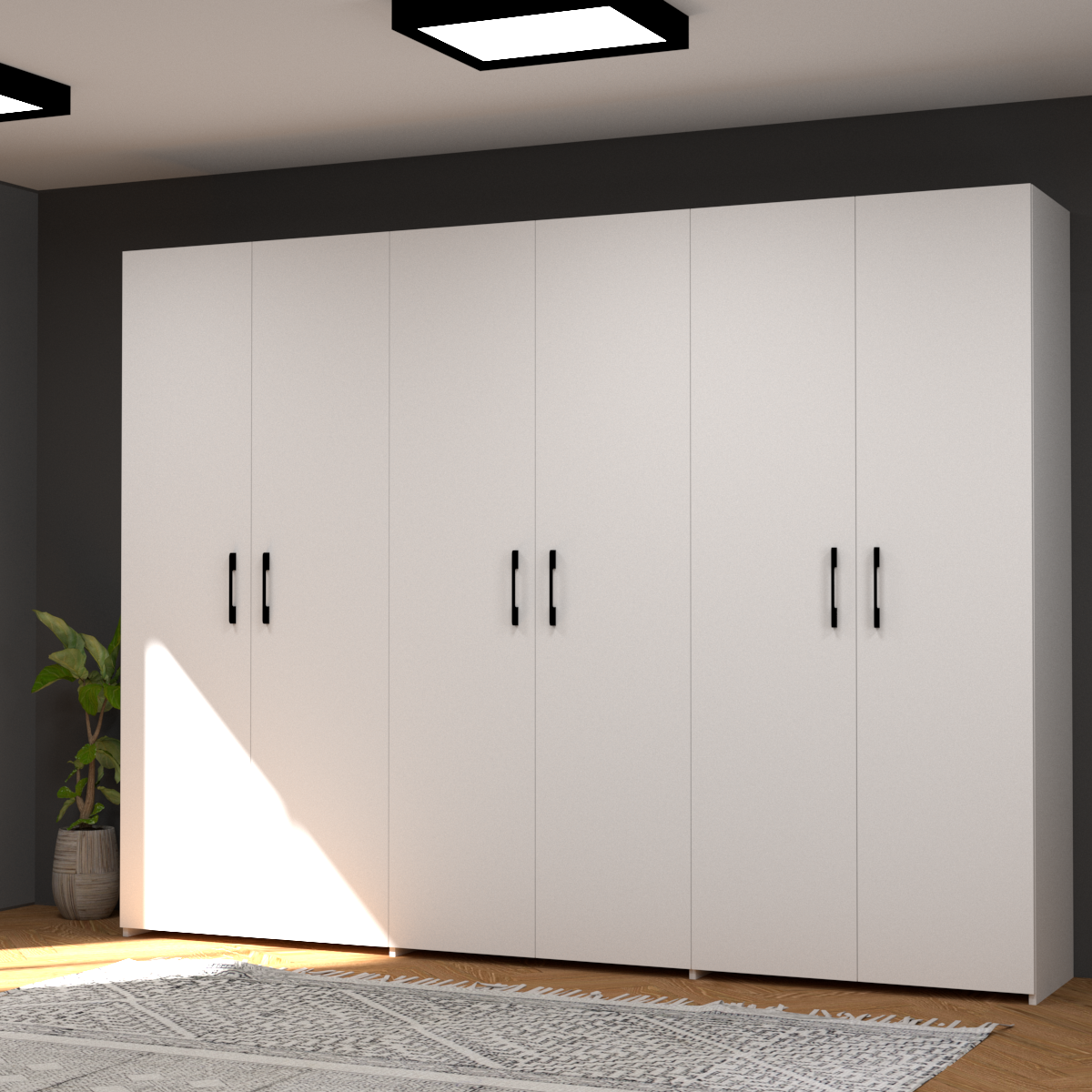 Asil No.3 İki Askılı Onbir Raflı Altı Kapaklı Gardırop Beyaz