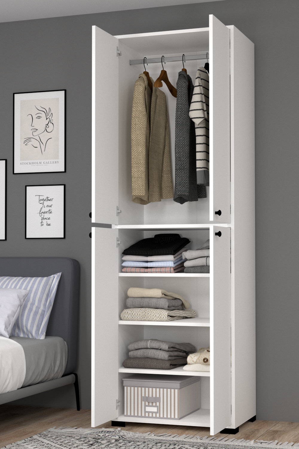 Bükreş No.3 Üç Raflı Askılı Bebek Odası Dolabı