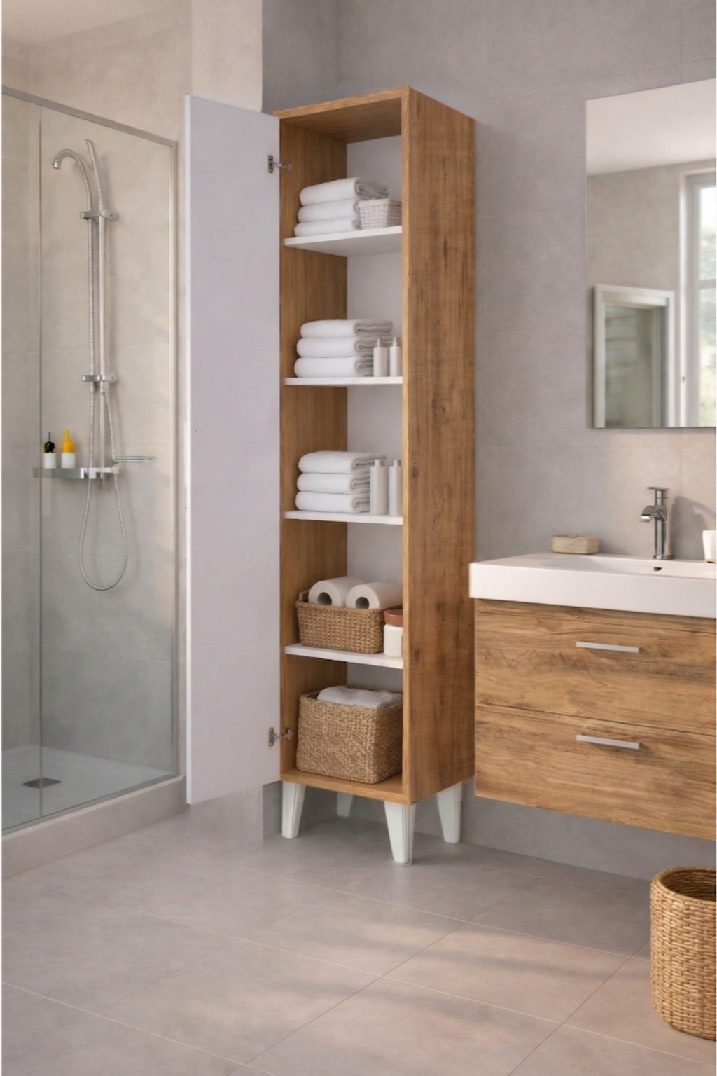 Çok Amaçlı Ahşap Banyo Dolabı