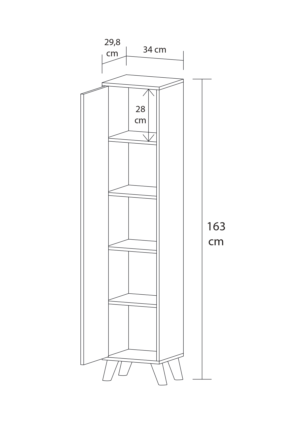 - Raflar Arası Yükseklik: 28 cm