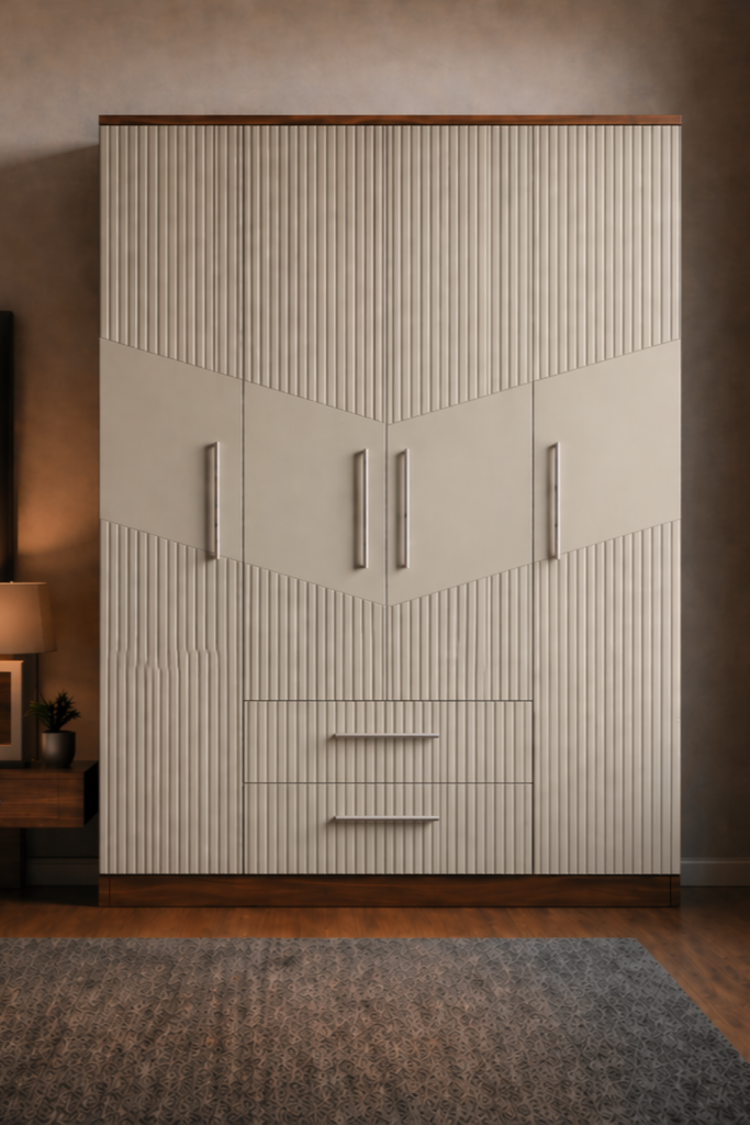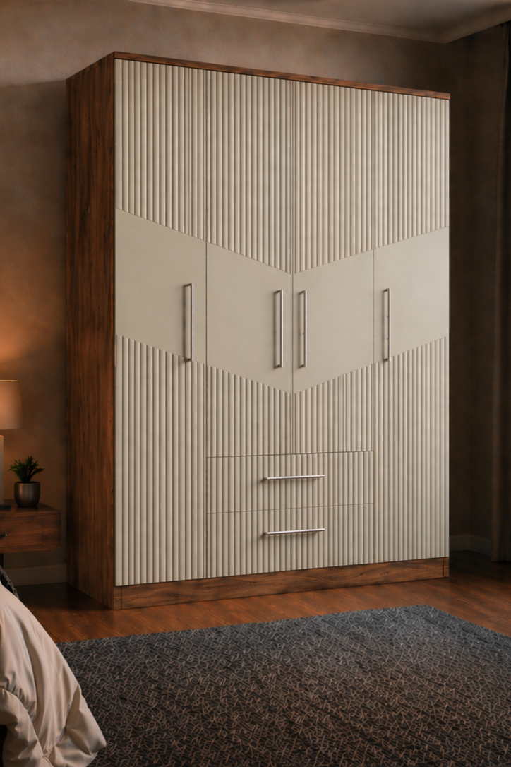 Karbon No.3 Dört Kapaklı İki Çekmeceli 10Raflı Gardırop Çam-Vizon