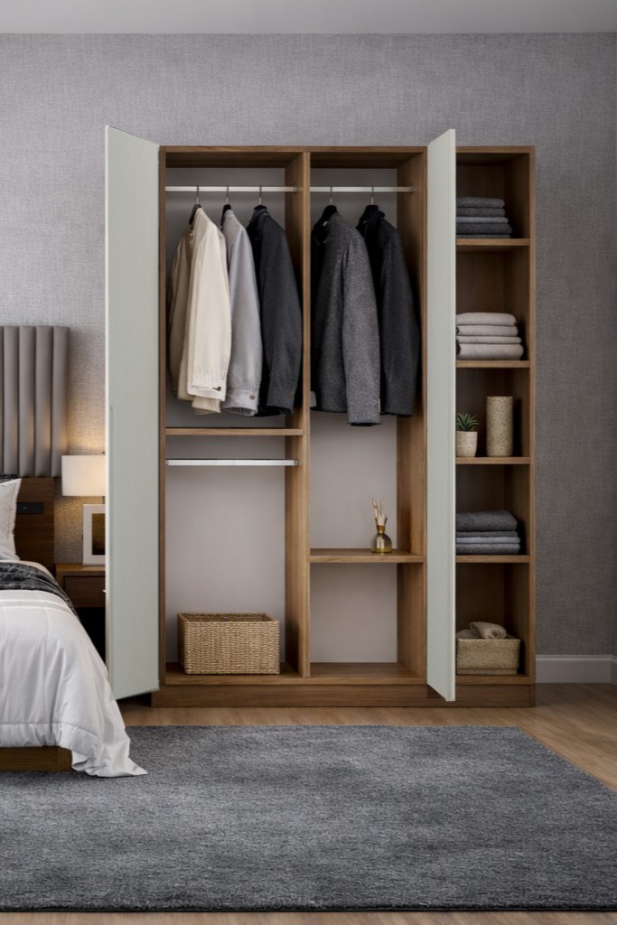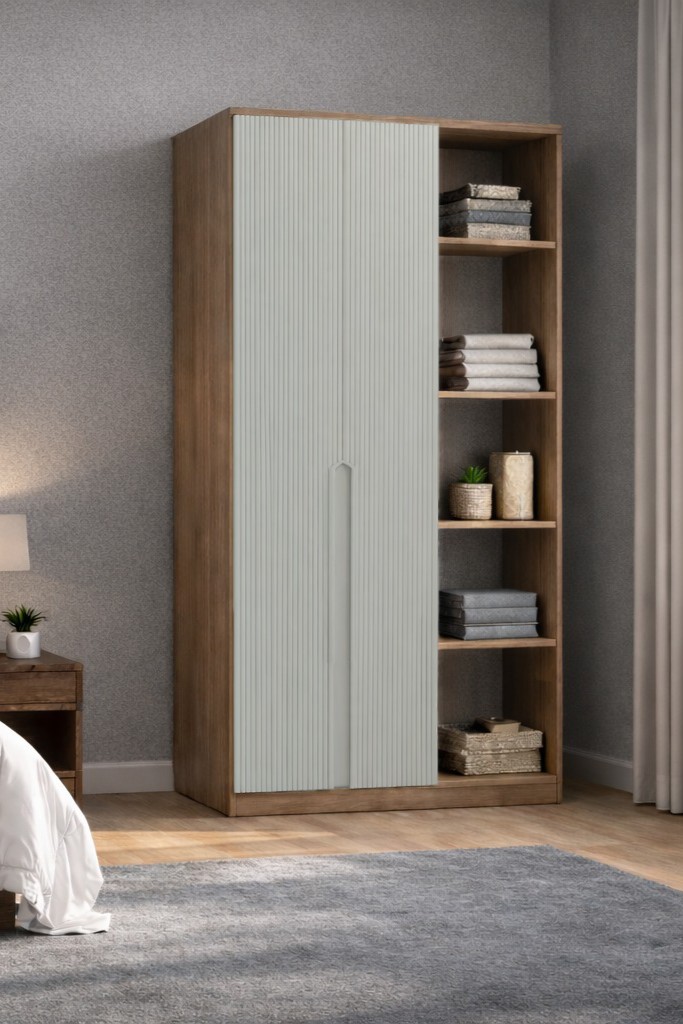 Nova No.1 İki Kapaklı 6Raflı Gardırop Çam-Vizon