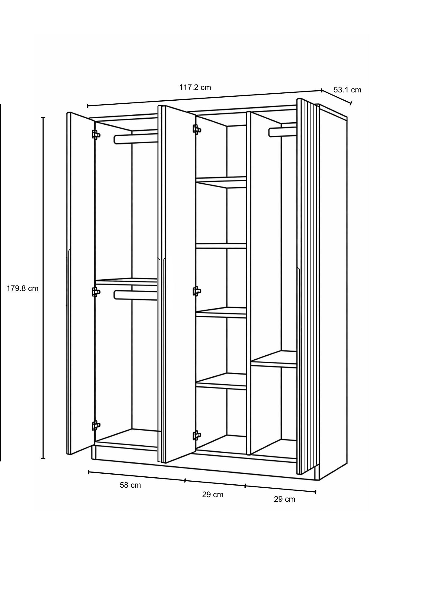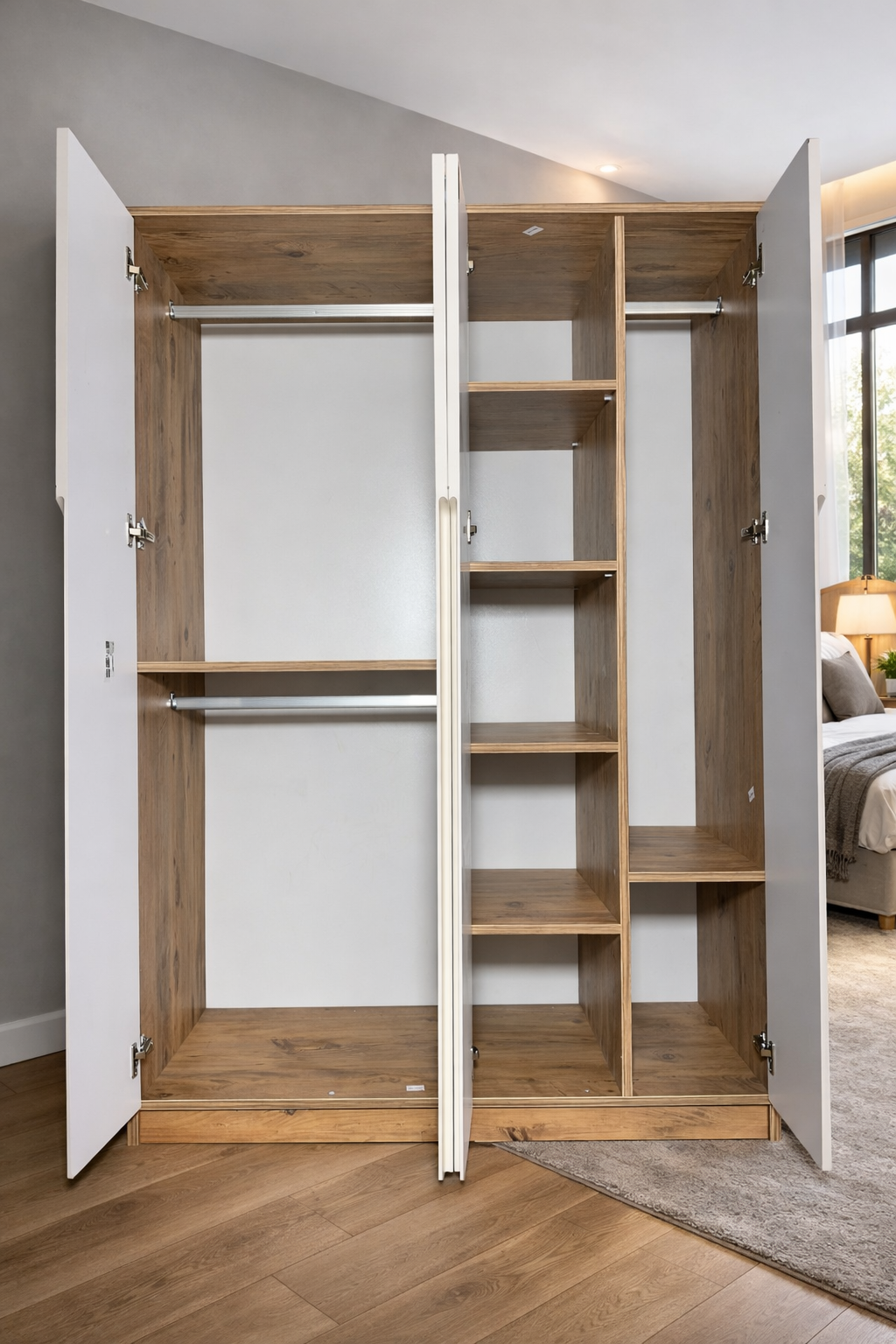 Nova No.2 Dört Kapaklı 6Raflı Gardırop Çam-Vizon